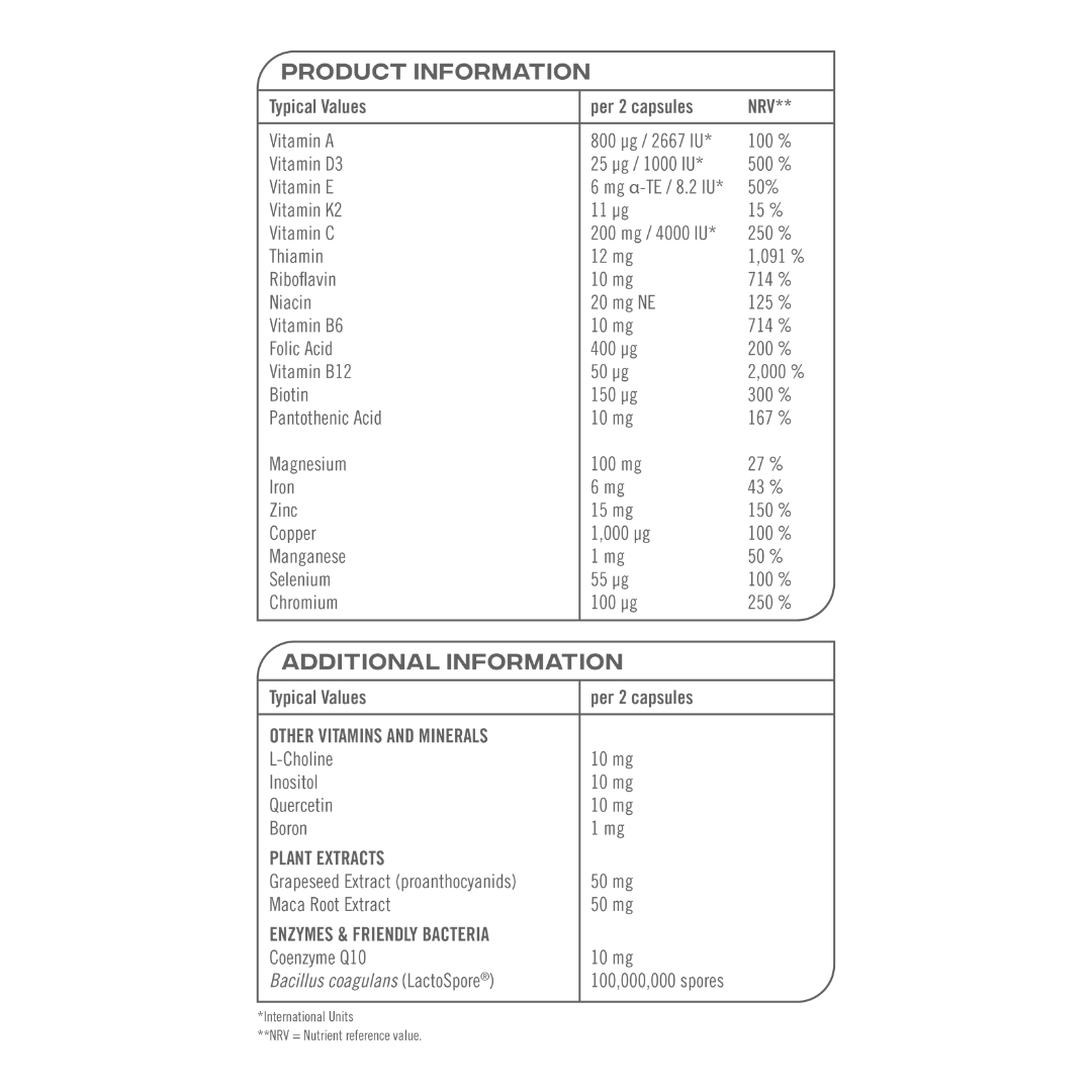 • A daily multivitamin made with high-quality minerals and vitamins to support your body in getting what it needs every day.