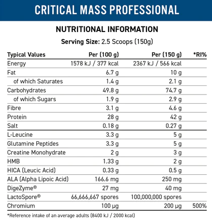 The UK’s most trusted mass gainer for serious size & strength – Critical Mass Professional is the ultimate high-calorie weight gainer.