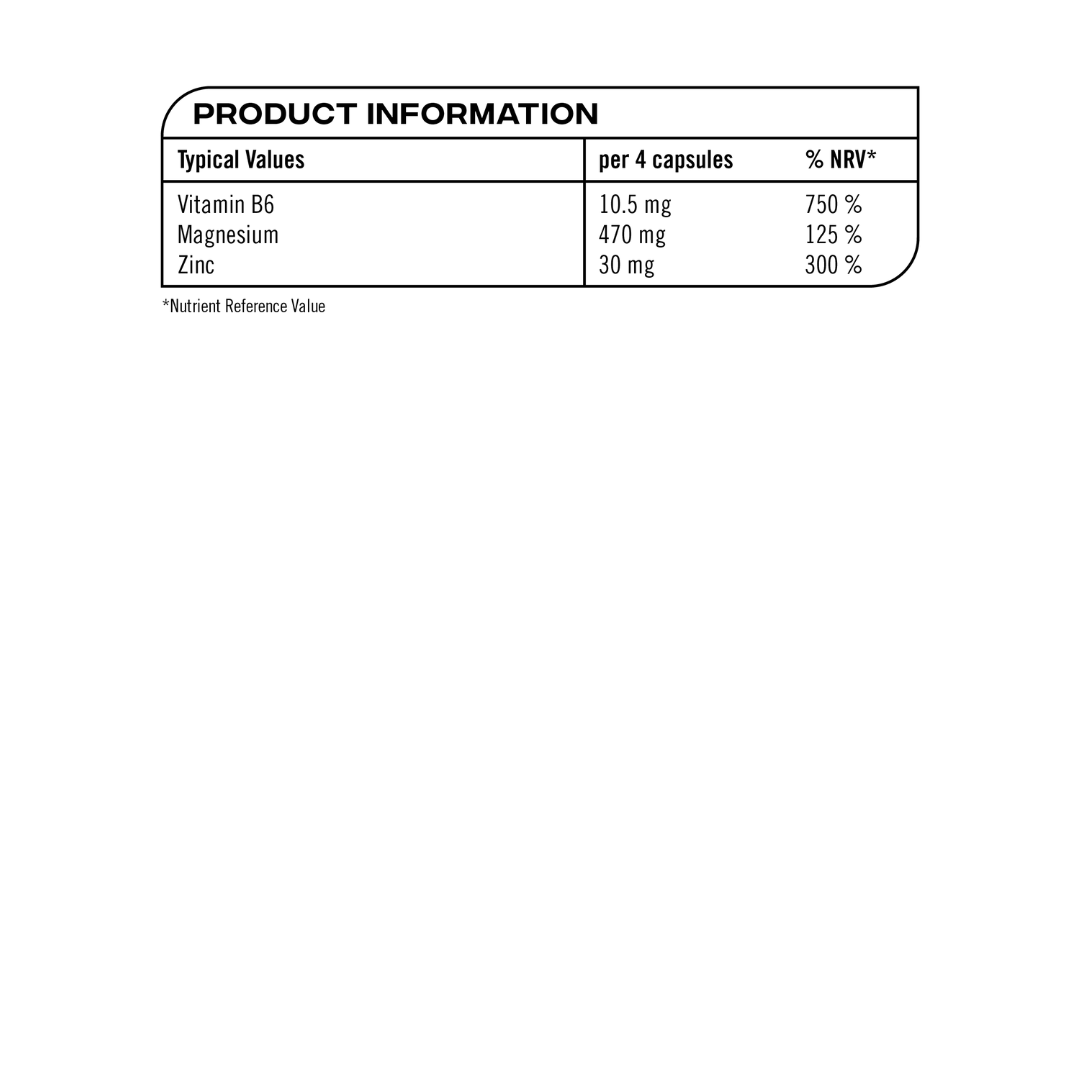 Zinc and magnesium contribute to normal protein synthesis. Zinc contributes to normal macronutrient and fatty acid metabolism. Magnesium contributes to a reduction of tiredness and fatigue.